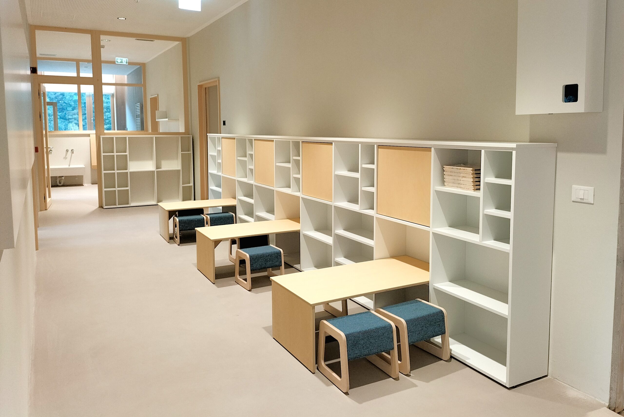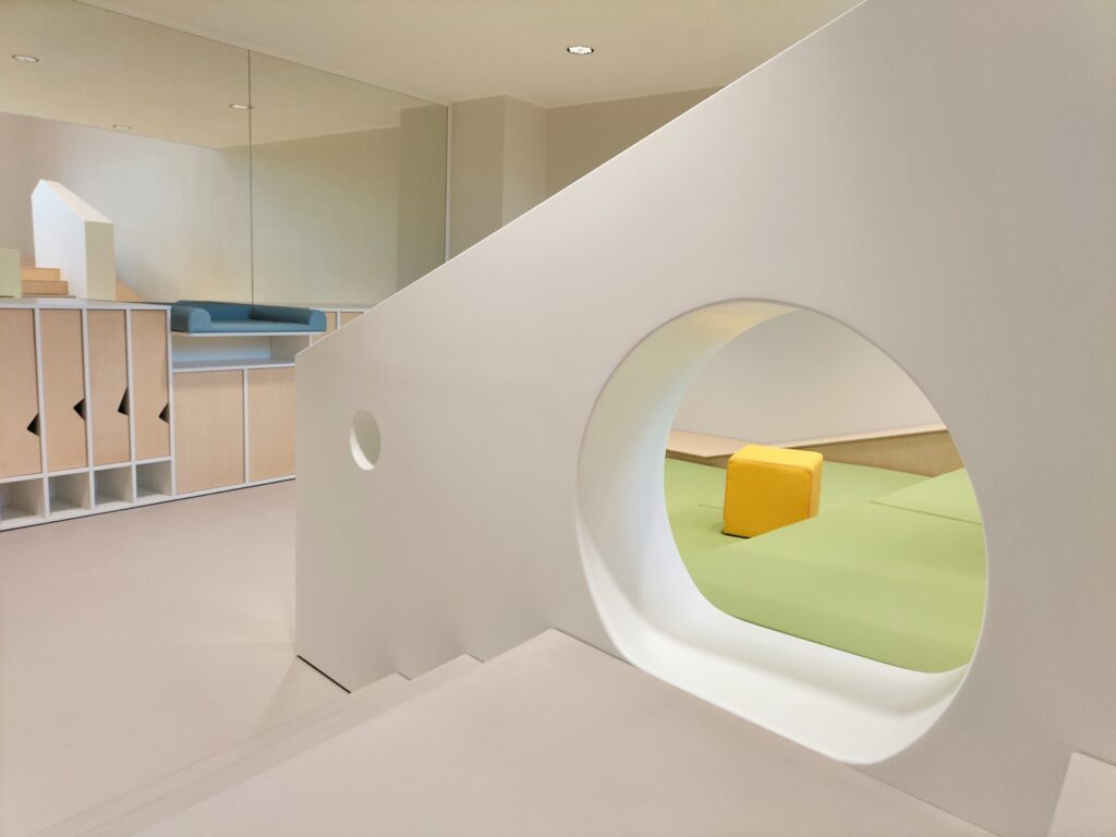 La ristrutturazione finanziata con il bando PNRR ha previsto l’adeguamento sismico di tutto l’edificio, la riqualificazione energetica in classe A ed è stata completata dal disegno su misura di spazi ed arredi interni e da proposte per il gioco libero all’aperto.